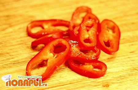 Для приготовления этого салата нам понадобится красный сладкий перец, идеально подойдет мелко сортный перец. Порезать кольцами, шириной 0,7-1,2 см.