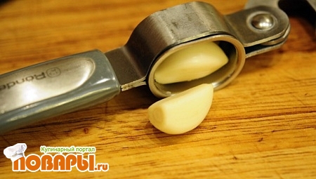 В сковороду наливаем соевый соус, добавляем чеснок, но не весь 1 зубчик нужно оставить свежим и подогреваем на самом маленьком огне.