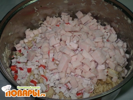 Салат с макаронами быстрого приготовления