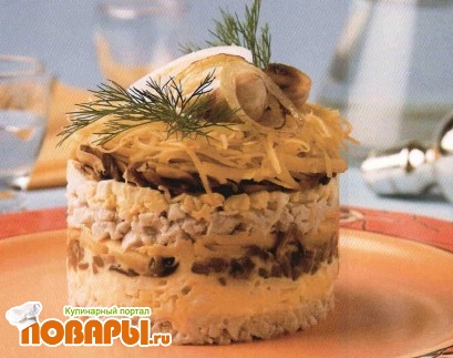 Салат-торт с курицей и грибами