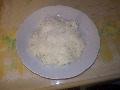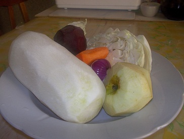 У нас в продаже в супермаркете появилась вот такая японская редька – Дайкон. Я решила приготовить салат из всех овощей, которые есть в доме. Салат только из сырых овощей. Улучшила его витаминные свойства за счет семян льна, которые лечат от всех болезней.