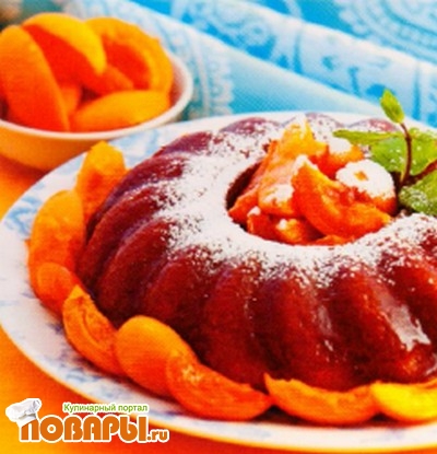 Поместить саварен на сервировочное блюдо. Фрукты из сиропа выложить в отверстие в середине пирога. Посыпать сахарной пудрой и украсить листочками мяты.