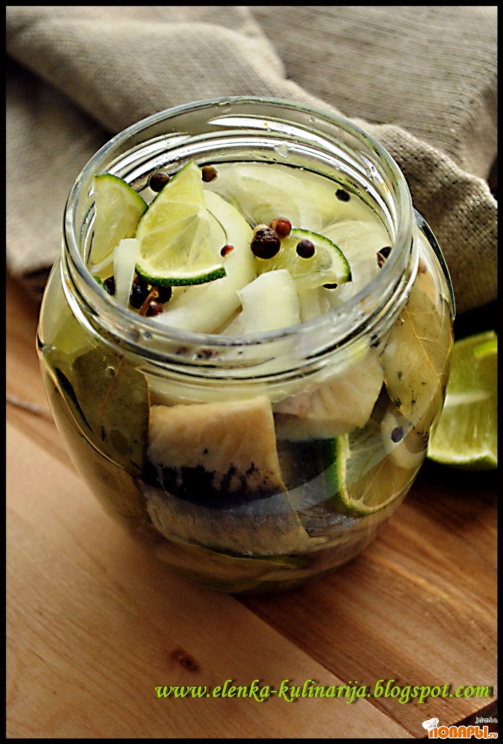 Сельдь очистить, удалить кости и разобрать на филе. Разрезать на кусочки и сложить в банку, чередуя слои сельди, ломтики лайма и лука. Залить остывшим маринадом. Поставить в холодильник на 2-3 дня.