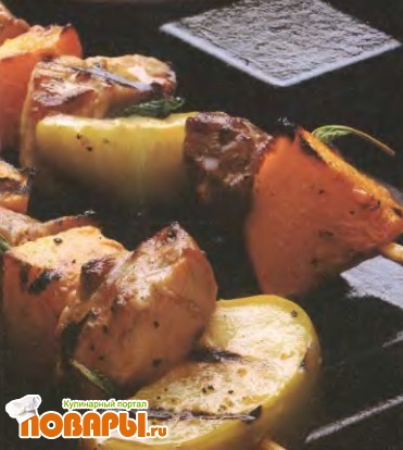 Шашлык из свинины с яблоками и кабачком