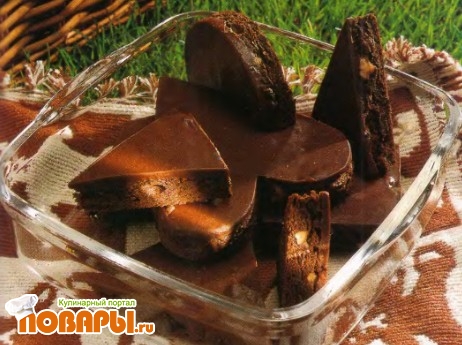 Слегка подогрейте глазурь на водяной бане, а затем равномерно нанесите ее на бисквит слоем около 5 мм. Дайте глазури застыть 10-15 мин. Нарежьте бисквит в виде печенья желаемой формы.