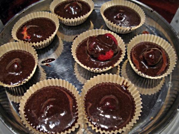 Шоколадные кексики с клубникой