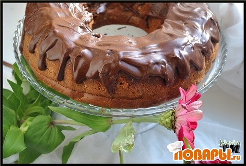 Выпекать в течение 45 минут, пробовать зубочисткой* если сухая, то вытащить из духовки кекс. Дать остыть и залить глазурью: растопить шоколад и масло до однородности.