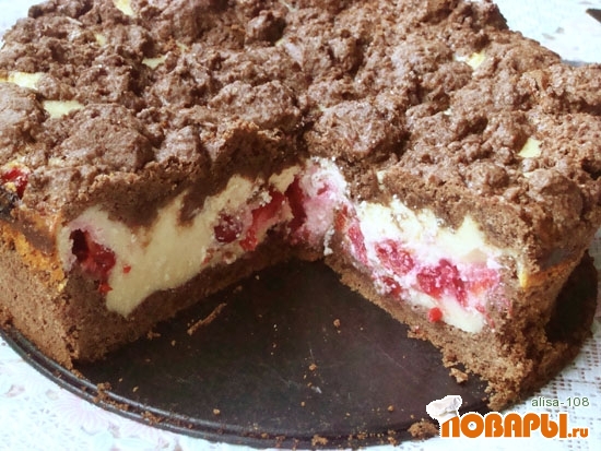 Шоколадный пирог с творогом и вишней