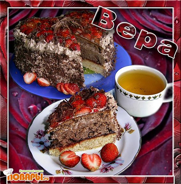 Шоколадный торт с клубникой