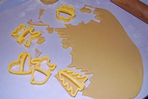 Взбиваем яйца, добавляем сахар и еще взбиваем. Вливаем растопленное масло и мед. Перемешиваем и добавляем 1 чайную ложку(без горки) соды гашеную уксусом. Добавляем чуток ванилина и муку. Замешиваем тесто, оно должно быть мягким. Вырезаем различные фигурки формочками.