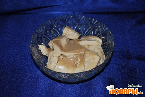 Смешиваем взбитые сливки с сахаром, кофе с ликером, желатин. Ставим в холодильник до полного застывания, затем режим на кусочки и аккуратно выкладываем в креманку.