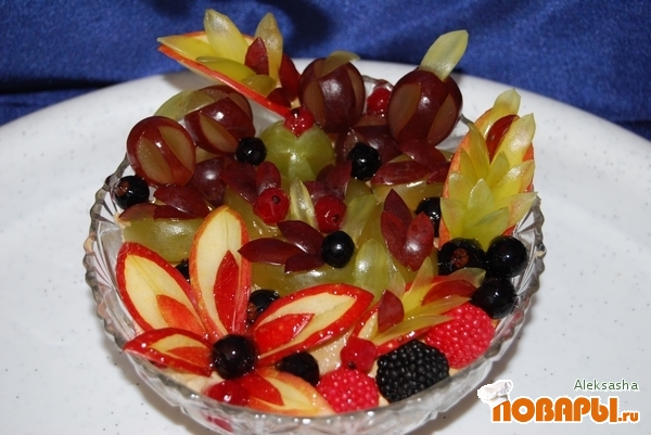 Берем наши фрукты и ягоды, нарезаем и красиво укладываем на суфле. Здесь главное полет Вашей фантазии и настоящая Любовь в тому человеку для которого вы этот десерт и готовите.