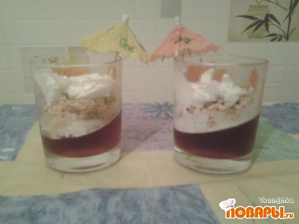 Охладить компот, разлить его в стаканы, поставить в морозильную камеру на 15 мин., подставив под стаканы что-нибудь так, чтобы стаканы были под наклоном.