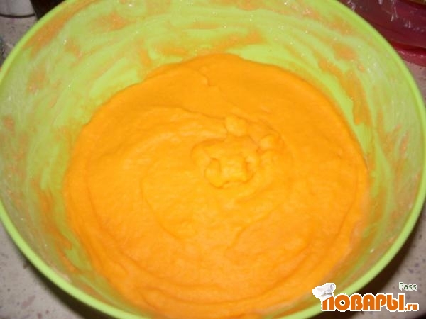 Добавить 2 желтка постоянно энергично помешивая, чтоб не свернулись. Затем поставить массу на мееедленный огонь и помешивая варить до загустения. Остудить. пропустить через сито. Добавить 35% сливки и тыквенное пюре.