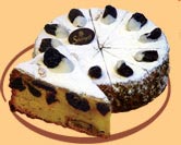 Сверху посыпать сахарной пудрой и украсить черносливом.
