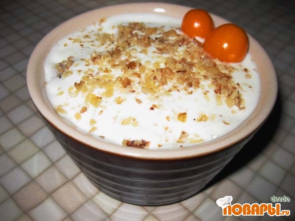 Сметану взбить с сахарной пудрой до состояния густого крема