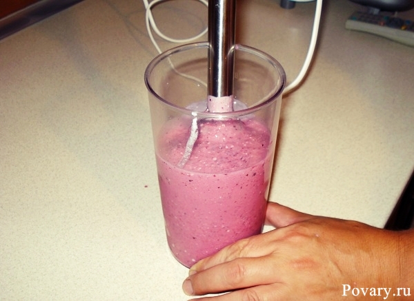 Итак, берем ягоды тщательно их моем, ждем когда они высохнут. Затем все ингредиенты поочередно складываем в чашу блендера. Начинаем с творога, затем заливаем его йогуртом, а потом выкладываем ягоды. Все содержимое на высокой скорости перемешиваем в блендере.