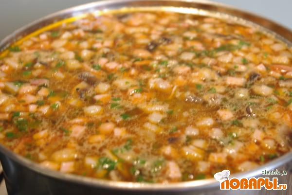 Режем грибы, добавляем их в бульон. (грибы не обязательный ингредиент, это уже называется "королевская солянка".