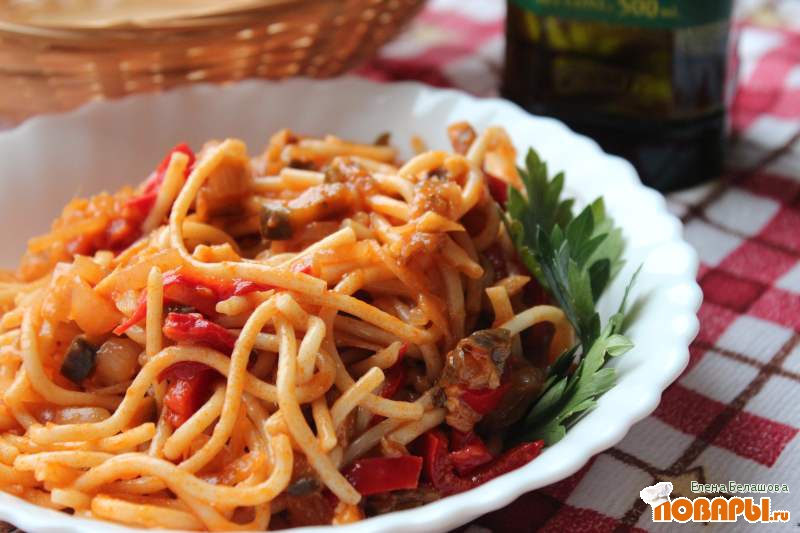 Спагетти с баклажанами и томатным соусом