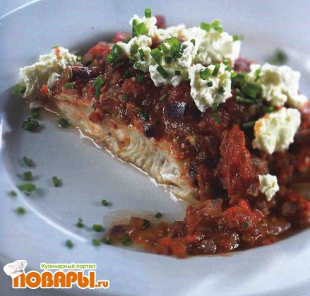 Посыпьте рыбу раскрошенной фетой, приправьте перцем и сбрызните оливковым маслом. Подавайте немедленно.
