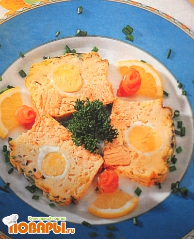 После добавить зелень, аккуратно перемешать. Добавить перец и соль, по вкусу. Примерно 3/4 яичной- сметанной массы вылить на выложенные в форму кусочки рыбы. Дать массе равномерно растечься. Заем осторожно чтобы не повредить желток, разбить оставшиеся яйца и расположить их в плотную друг к другу.