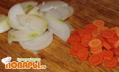- Лук почистить. Помыть и порезать полукольцами.