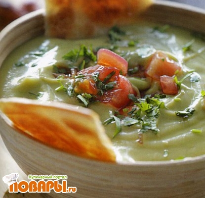 Добавить мякоть авокадо, влить немного бульона, посолить и поперчить по вкусу.