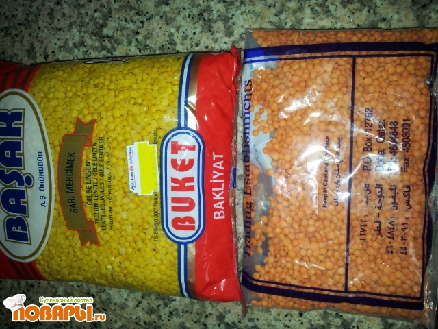 - 2 стакана Чечевица (жёлтаяй или красная)