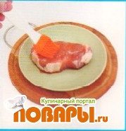 Замаринованное мясо сбрызнуть оставшимся маслом и жарить в духовке, разогретой до 200°С, в течение 20 минут.