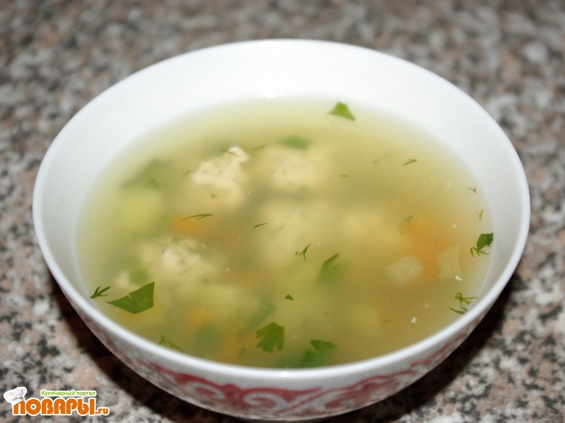 Я фрикадельки всегда отвариваю отдельно, в таком случае они не пропитаются овощами, а будут "мясными" и бульон в супе будет прозрачный.