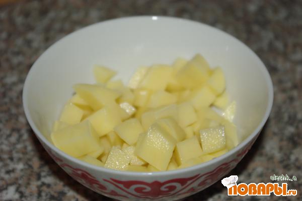 Отдельно варим фрикадельки. Я их делаю из мелко нарубленного куриного филе с приправами (в данном случае - майораном), но приправу лучше выбирать по своему вкусу.