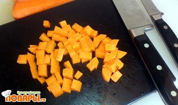 Картофель порезать небольшими кубиками и отварить до полной готовности минут 25.