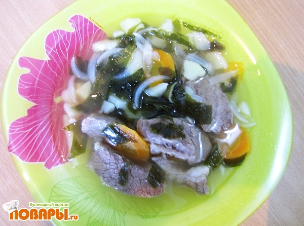 Традиционно, этот суп подаётся с чашкой вареного пресного риса. Рассчитано на кастрюлю объёмом 2,2 литра.