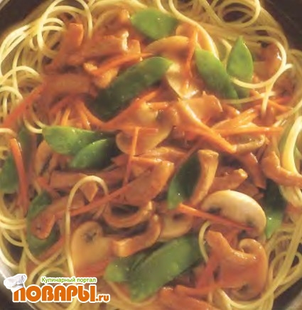 Свинина, свежие овощи и тонкая паста прекрасно сочетаются в этом нарядном блюде. Вместо итальянской пасты можно использовать китайскую лапшу. Слегка похрустывающие морковь и зеленая фасоль придают этому острому блюду со свининой незабываемый вкус лета.