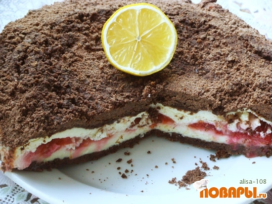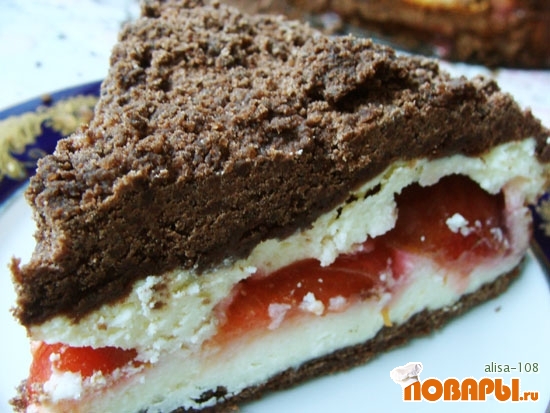 Приготовить сырную массу. Творог смешать с сахаром, ванилью, крахмалом и желтками. Все взбить миксером, добавить взбитые в крутую пену белки и аккуратно перемешать.