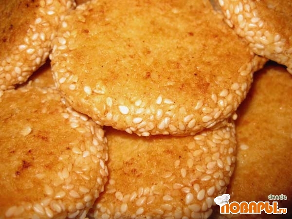 Достать тесто из холодильника и, надавливая, обкатать его в кунжуте или орехах.