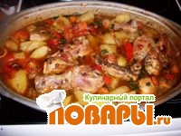 Тушить блюдо в духовке необходимо в открытом виде без крышки. Овощи не должны развариться. Бульон получается насыщенный и ароматный. Подробные фотографии приготовления будут выложены на форуме в разделе "Завтрак, обед, ужин. Что сегодня готовили?" (стр. 14 или 15)