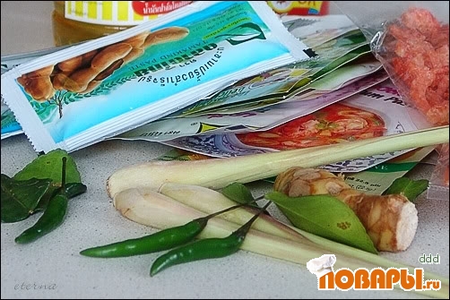 Из малодоступных экзотических составляющих без особого ущерба для вкуса можно заменить, пожалуй, галангал на имбирь, а также пальмовые сахар и масло - на обычные. Ничем нельзя заменить лимонное сорго и листья каффир-лайма (их аромат, кстати, очень похож на аромат мелиссы - лимонной мяты). В крайнем случае, можно использовать готовую пасту Том Ям. Также будьте осторожны с тайским перцем, его жгучесть может быть разной и запросто можно переборщить. Но суп все же дожен быть ощутимо острым.
