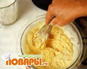 Растопите сливочное масло в кастрюльке на самом слабом огне и оставьте слегка остыть. Добавьте в тесто немного молока и растопленное масло, чтобы тесто стало жидким, однородным и без комков.