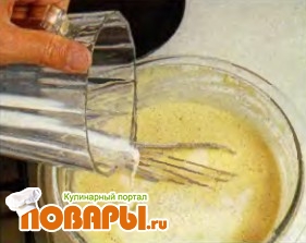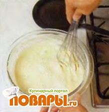 Для получения более легкого теста можно заменить молоко светлым пивом. Для этого просейте 75 г муки в миску горкой, сделайте в центре углубление и добавьте щепотку соли, 1 ст. л. растопленного сливочного масла и 100 мл светлого пива. Венчиком перемешайте масло с пивом, не трогая муку. Затем добавьте 3 яйца и перемешивайте венчиком все ингредиенты до образования однородного теста. Влейте еще 100 мл пива.