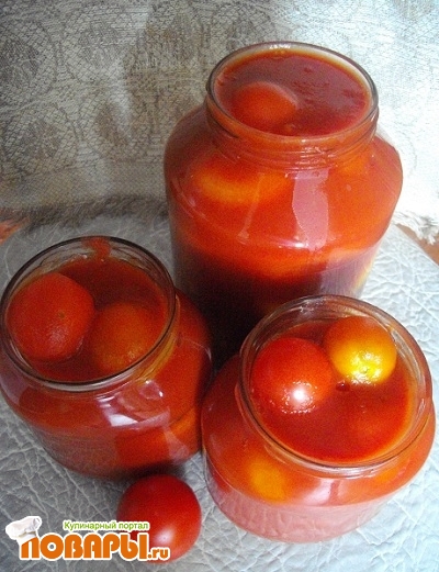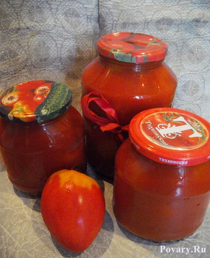 Приготовить любым удобным способом сок из крупных томатов. Можно просто пропустить через мясорубку или протереть через сито.