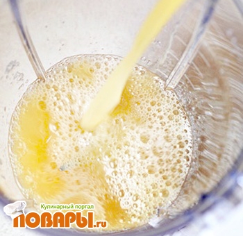 Заливаем апельсиновый сок в блендер и добавляем туда выжатый из лимона сок (внимательно следим за косточками).