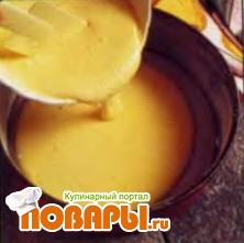 Выложите тесто в смазанную маслом и посыпанную мукой форму и сдегка постучите формой об стол. Выпекайте в горячей духовке 35 минут.