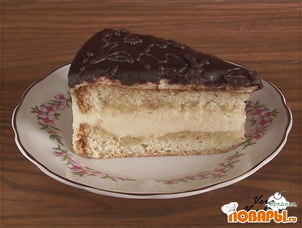 Готовность проверить спичкой, она должна остаться сухой. Бисквит вынуть из формы, остудить, разрезать на 2 коржа.