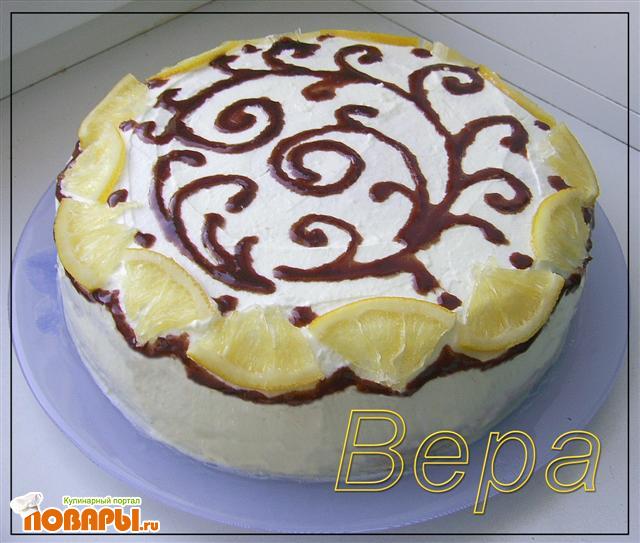 Получившимся кремом намазать корж. Выложить сверху мякоть лимона.
