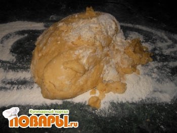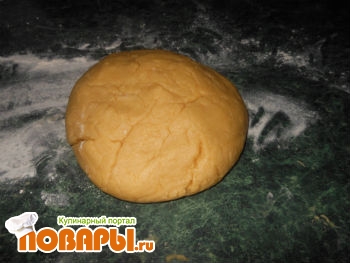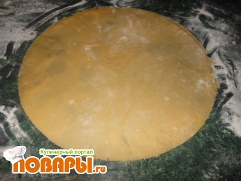 Брать немного теста и раскатать в пласт. С помощью тарелки вырезать ровный круглый корж. Корж переложить на противень, смазанный маслом и посыпанный мукой, и наколоть вилкой. Коржи перелаживать с помошью скалки.