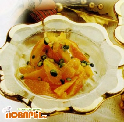 Срежьте кожуру с апельсинов, собирая сок в миску. Добавьте к соку ликер и очищенные дольки апельсинов. Оставьте настояться. На разделочной доске нарежьте апельсиновую кожуру тонкими полосками. Положите полоски в кастрюльку, залейте холодной водой и доведите до кипения на слабом огне.