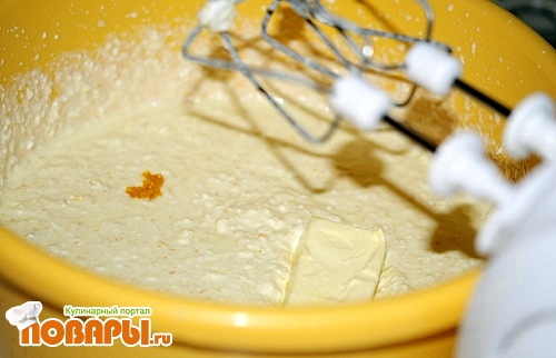 Творог, масло сливочное, цедру, молотый миндаль выкладываем в отдельную посуду, заливаем ранее приготовленной сливочной жидкостью.