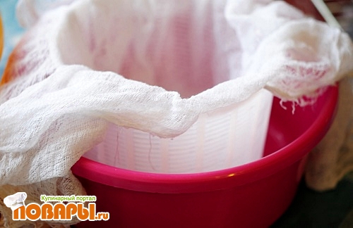 Далее, переливаем нашу пасхальную смесь в специальную или собственно изобретенную посуду для творожных пасок.