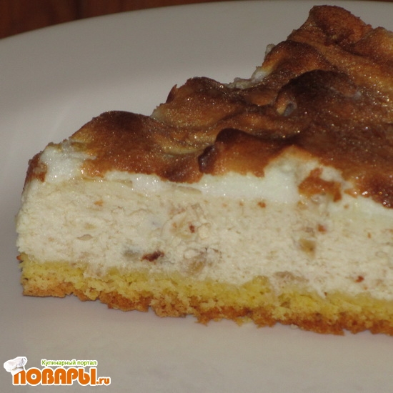 В белки добавляем немного соли и взбиваем до образования плотной белковой пены, понемногу добавляя пол стакана пудры, покрываем верх тортика и допекаем еще 10-15 минут.